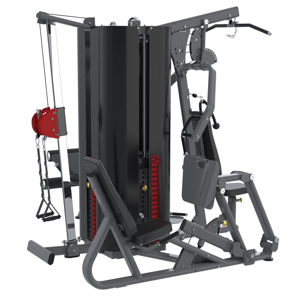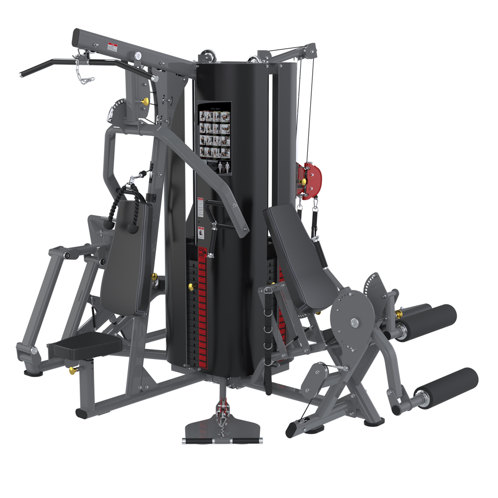 ★功能:坐姿推胸、坐姿推肩、坐姿划船、高拉背肌训练、站姿肱三头肌屈伸和坐姿收腹训练,坐姿踢腿训练和坐姿勾腿训练,站姿肱二头肌练习、小腿提踵训练、单手提拉训练、腿部内弯、腿部内外弯,坐姿蹬腿练习、坐姿小腿训练,各种动态双滑轮绳动练习等